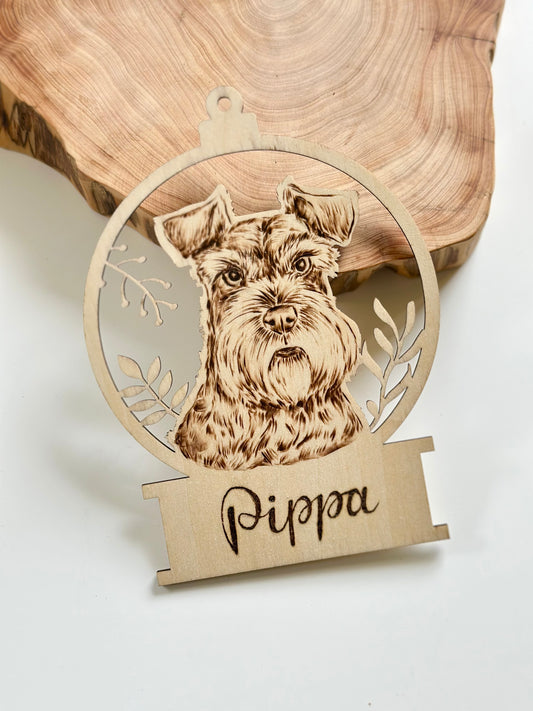 Custom Pet Portrait Christmas Ornament – Handmade Woodburned Decoration | Pet Memorial Gift