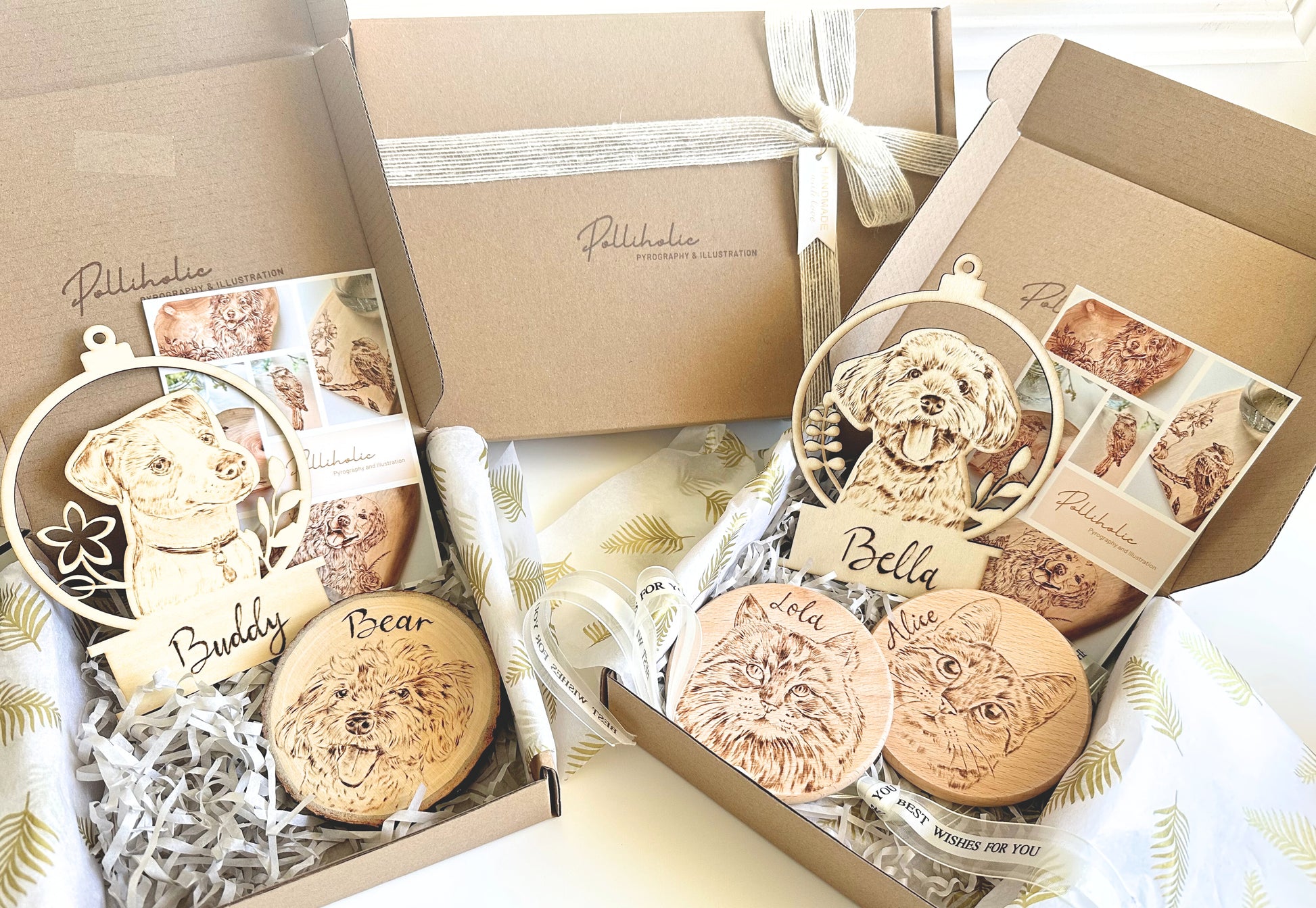 Celebrate this Christmas with a truly unique, handmade gift — a custom pet portrait beautifully burned by hand onto natural timber.